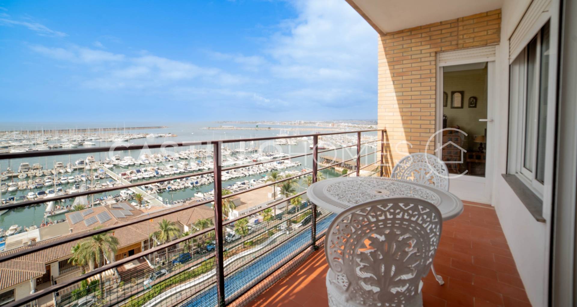 Spacious first line apartment with panoramic views over the sea and port.