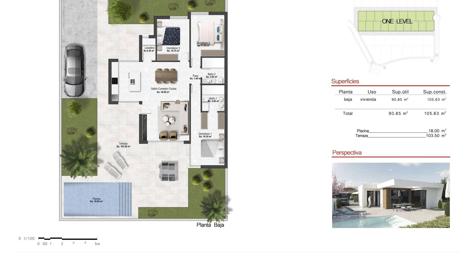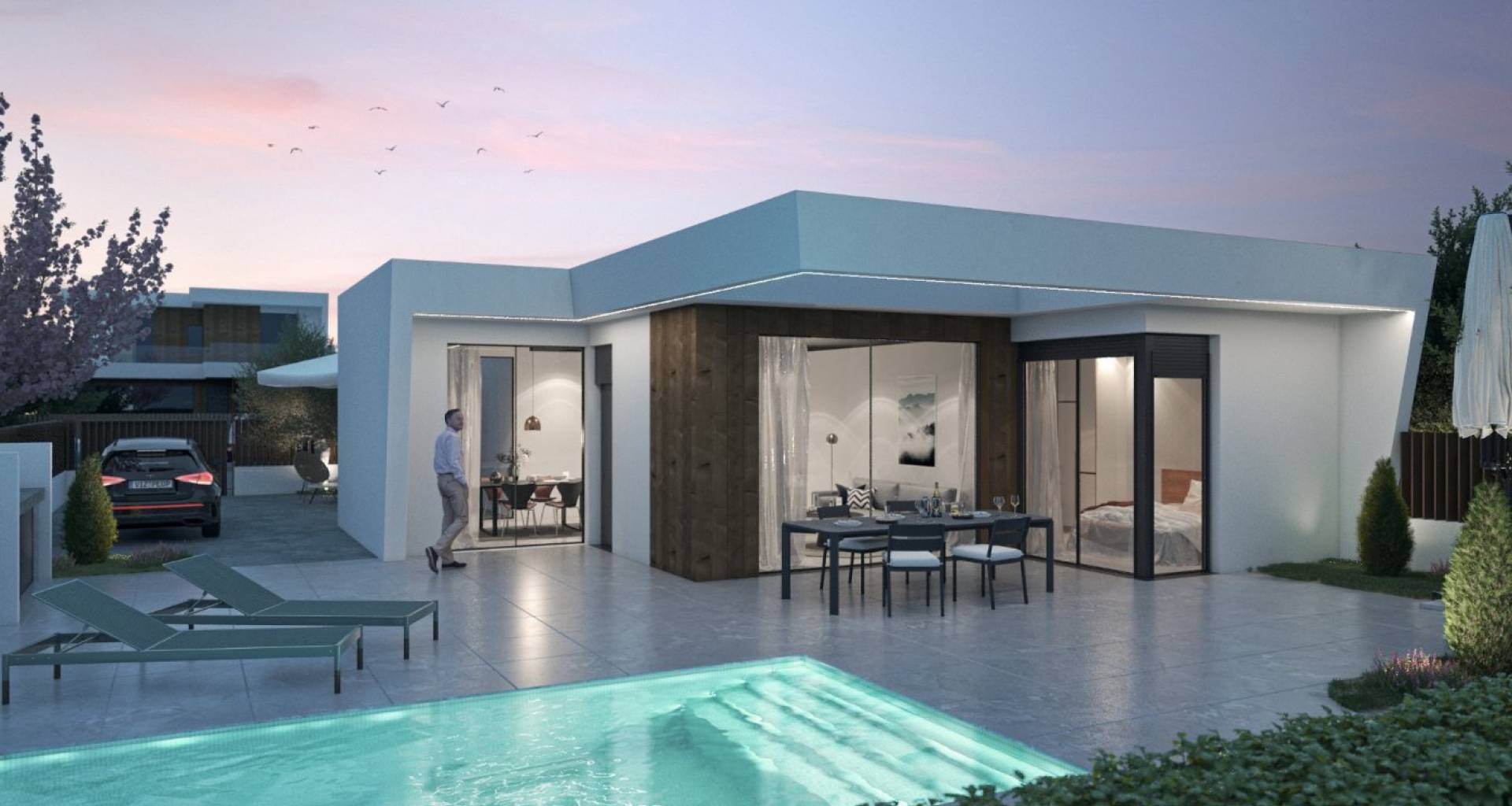 VILLAS DE OBRA NUEVA DE UNA SOLA PLANTA EN CAMPO DE GOLF ALTAONA, MURCIA