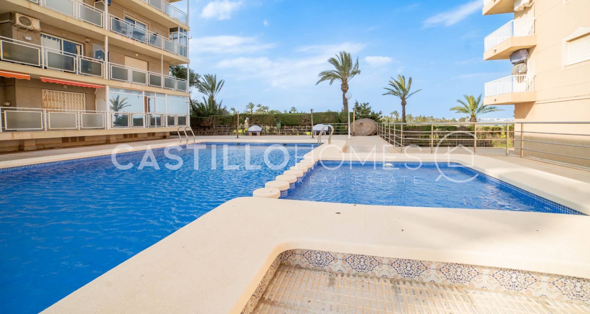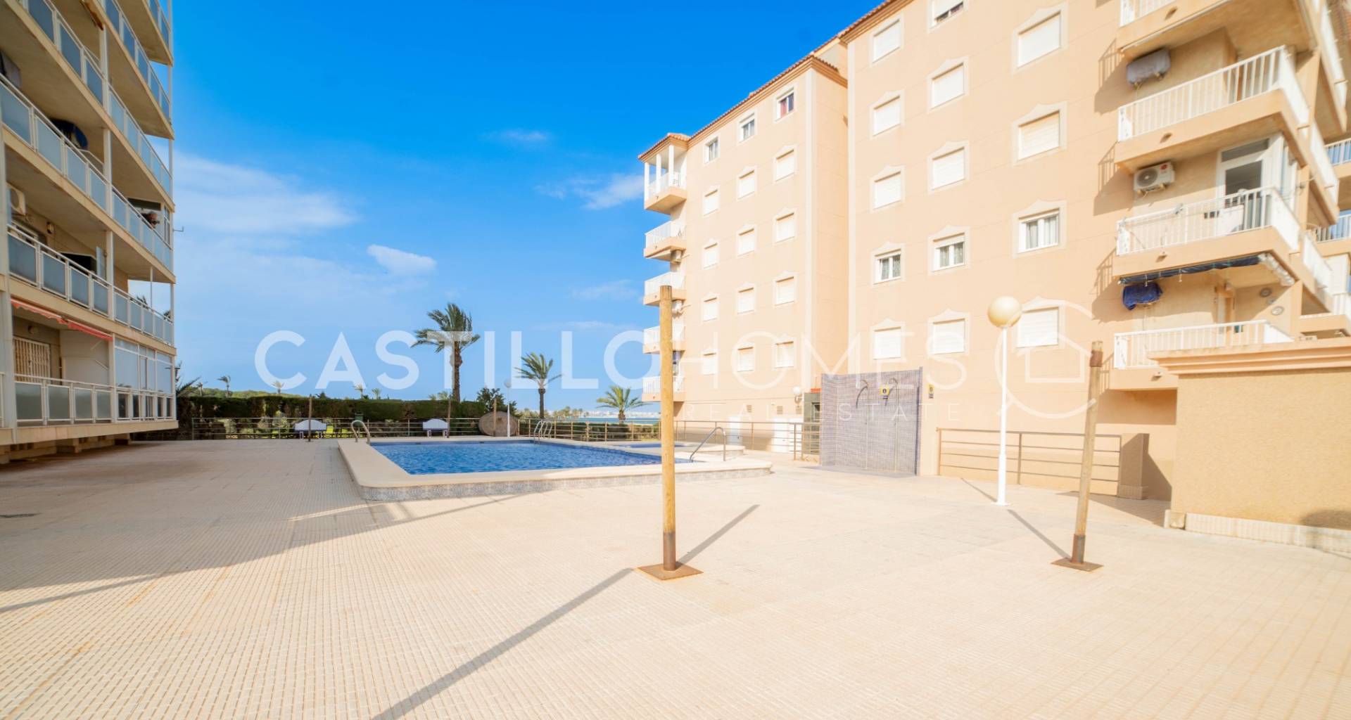 Appartement chaleureux avec vue sur la mer, piscine commune et parking privé à Punta Prima