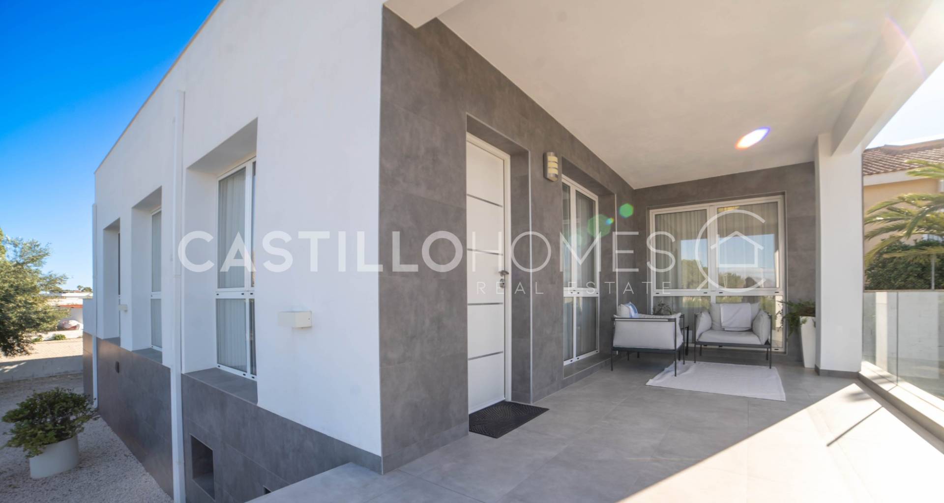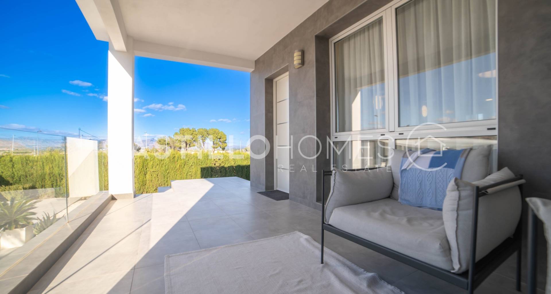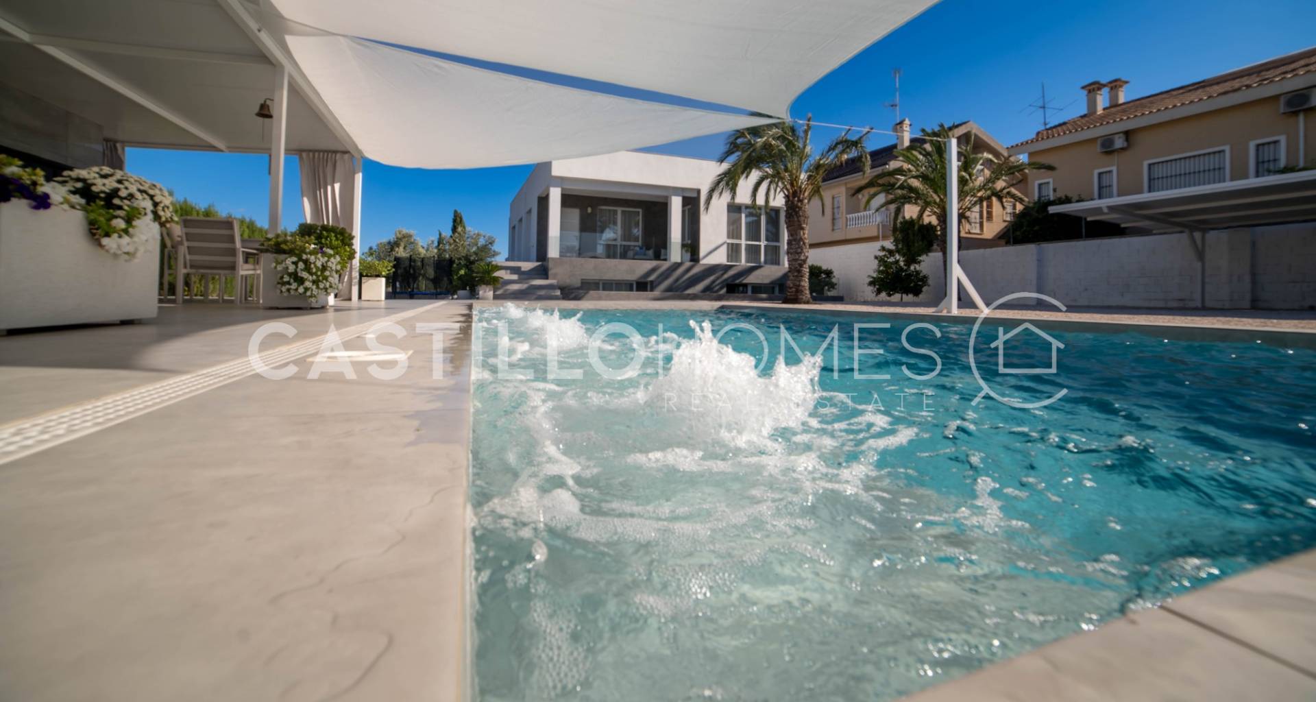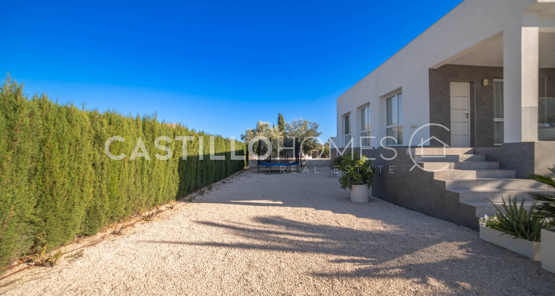 Modern villa med stor tomt, privat pool och fin utsikt över bergen