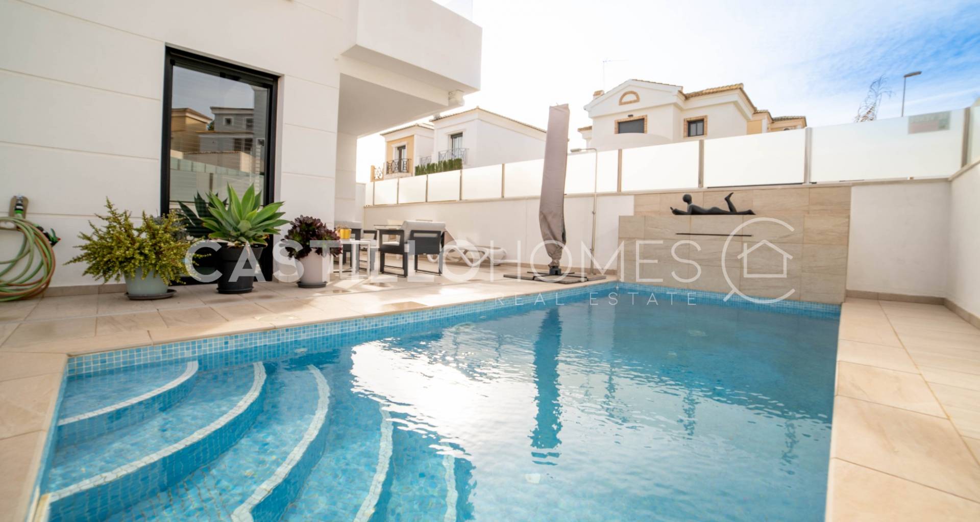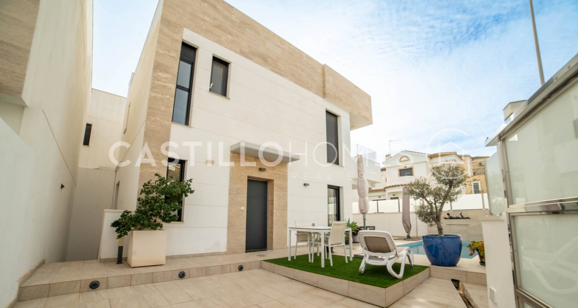 Modern villa i soligt läge med privat pool och flera uteplatser i Las Filipinas