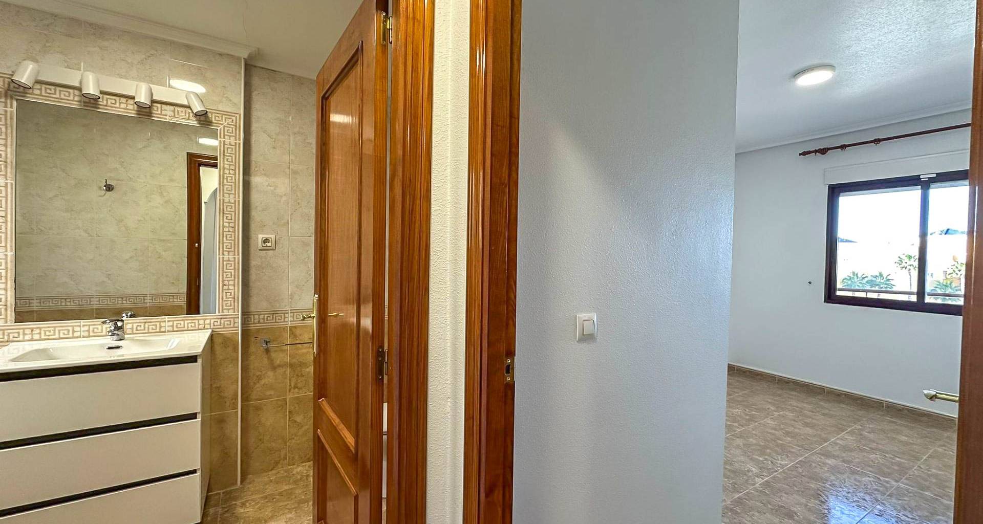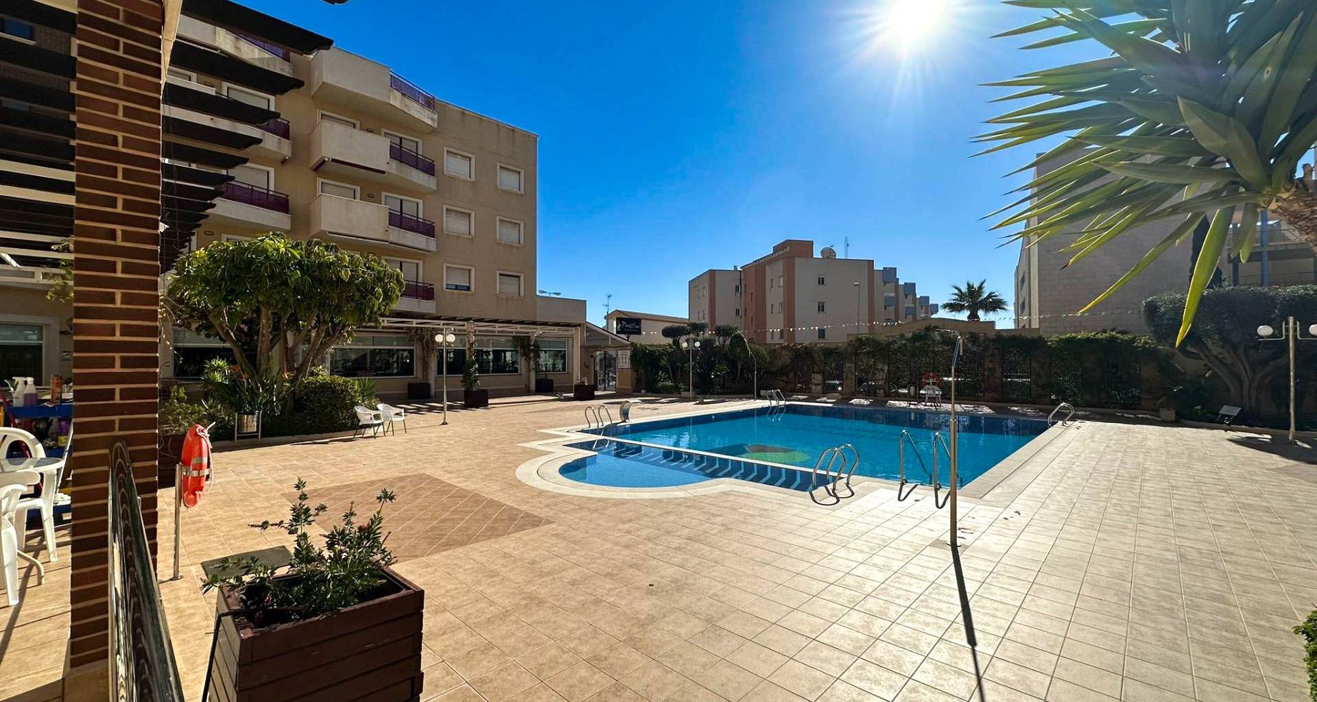 Rymlig lägenhet med terrass, gemensam pool och parkering i Aguamarina, Orihuela Costa